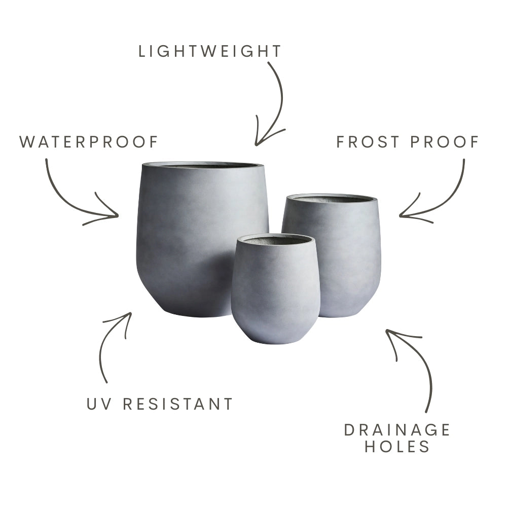 Esta colección contemporánea de macetas está fabricada con una mezcla ligera de materiales compuestos, lo que las hace extremadamente resistentes y resistentes a la intemperie. Suave y elegante, la gama Willow está disponible en tres colores y cada maceta cuenta con dos orificios de drenaje.